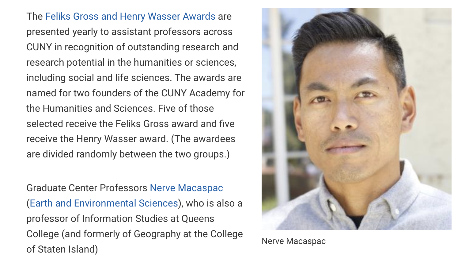 2023: CUNY Henry Wasser Award for Outstanding Research